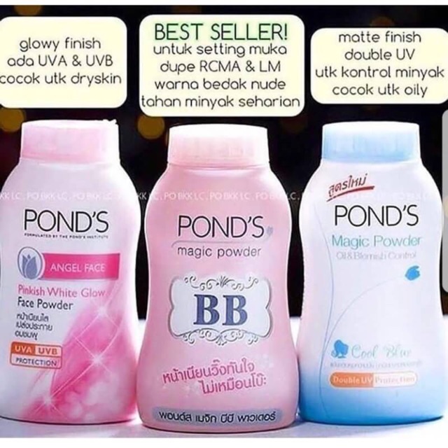 Adakah kriteria tertentu dalam memilih merk bedak yang bagus untuk jenis kulit berminyak. Berbeda dengan etude zero sebum drying powder bedak lokal ini tidak mengklaim untuk menghasilkan tampilan yang matte sepanjang hari. Sejarah panjang pond s sendiri dimulai dari tahun 1846 dimana pertama kali didirikan di amerika serikat oleh seorang apoteker theron t.