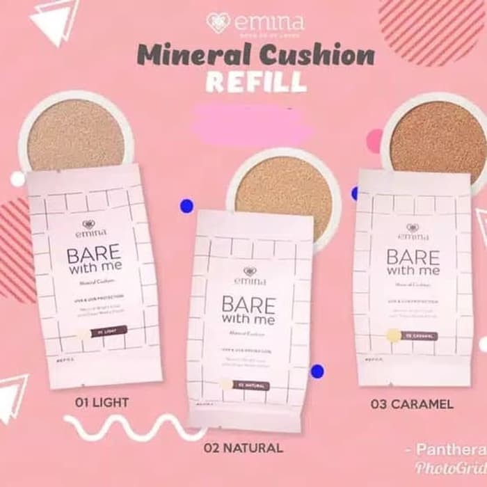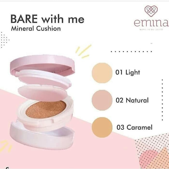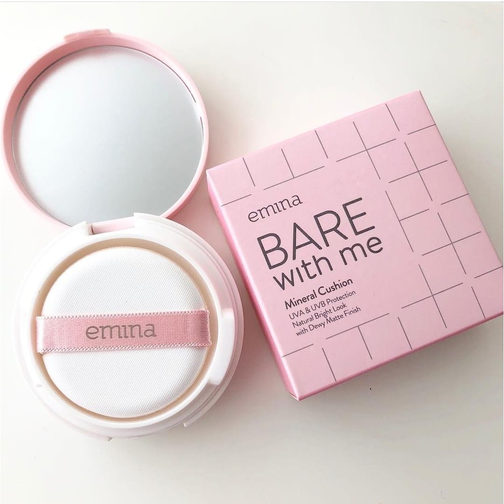 Bedak emina bare with me mineral cushion. Kini anda bisa mendapatkan diskon hingga 58 ketika berbelanja bedak cushion emina online. Emina bare with me mineral cushion memberikan efek lebih cerah sekaligus melindungi kulitmu dari sinar uv. Emina bare with me mineral cushion mengandung uv protection yang dapat melindungi kulit dan memberikan efek cerah oil absorber yang teksturnya ringan sehingga dapat memberikan hasil flawless natural dengan dewy matte finish. Titanium dioxide juga kerap menjadi pilihan favorit untuk perlindungan dari sinar matahari karena partikelnya kecil sehingga tidak meninggalkan whitecast.