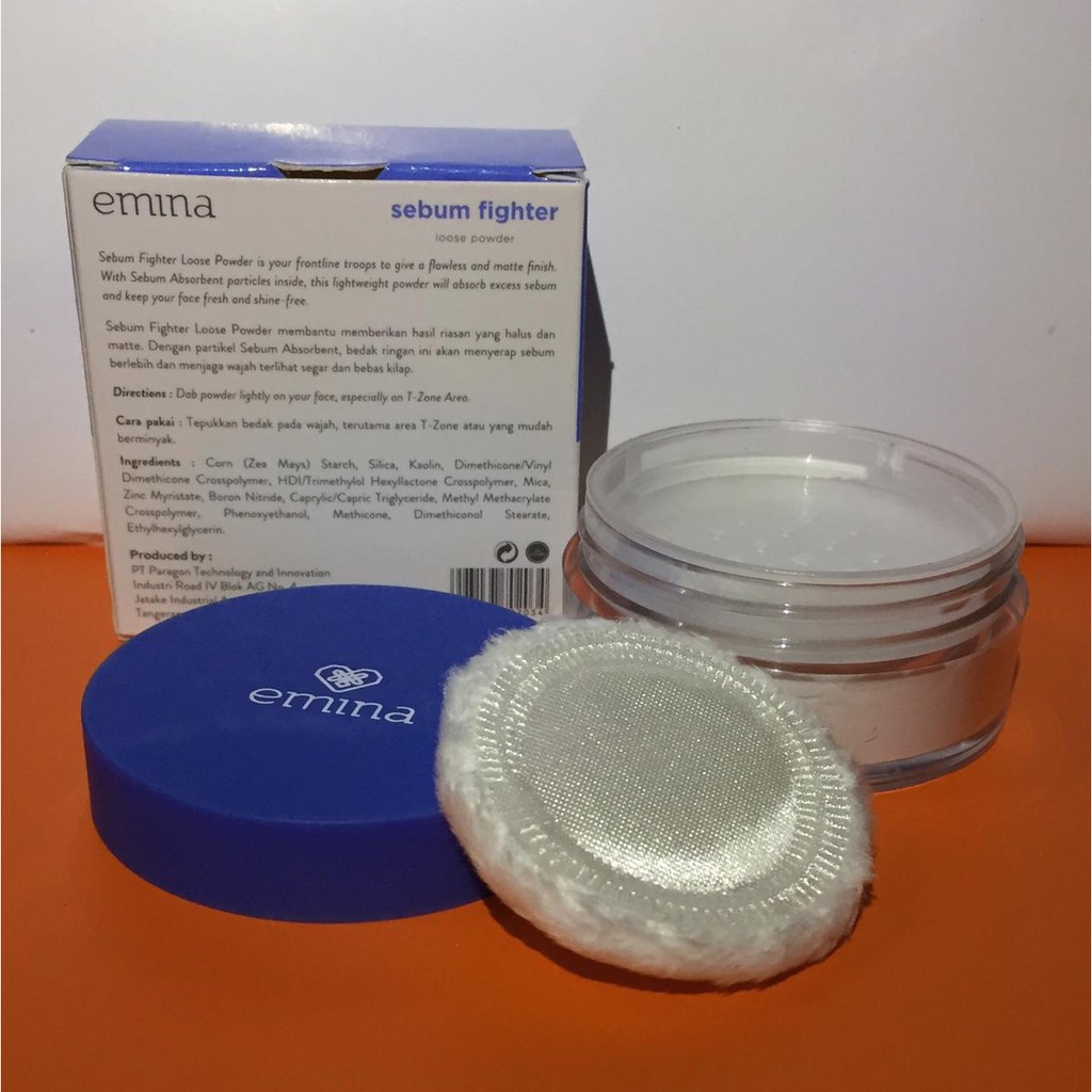Varian bedak emina yang perlu anda coba terutama jika ingin terbebas dari minyak dan komedo sepanjang hari yaitu sebum fighter loose powder. Bedak tabur yg mampu menyerap minyak berlebih pada wajah. Bedak translucent yang tidak berwarna less pigment sehingga cocok untuk semua warna kulit 3. Mengandung partikel sebum absorbent yg mampu menyerap minyak berlebih sehingga cocok untuk kulit berjerawat.