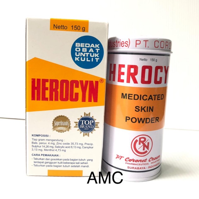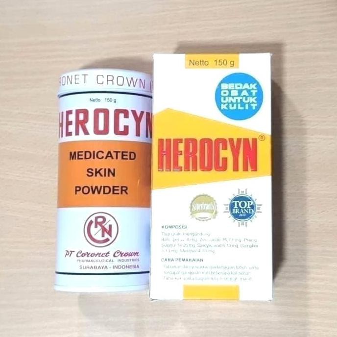 Bedak obat untuk kulit. Herocyn bedak mengandung balsam peru zink oksida belerang asam salisilat kamfer dan mentol. Bedak ini merupakan obat bebas yang tidak memerlukan resep dokter.