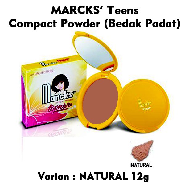 Bedak ini memiliki banyak varian yang bisa kalian pilih untuk makeup sehari hari. Bedak ini mengandung formula untuk menyempurnakan penampilan make up wajah menjadi tampak halus dan cantik secara alami. Kini bedak marcks hadir dengan product baru yaitu marcks teens compact powder bedak padat ringan yang diformulasikan yang cocok digunakan untuk kulit berminyak buat para remaja yang ingin cantik alami setiap saat. Tak hanya itu bedak yang terkenal memiliki warna natural ini juga banyak dicari khususnya oleh kaum hawa yang ingin tampil natural dengan kosmetik aman.