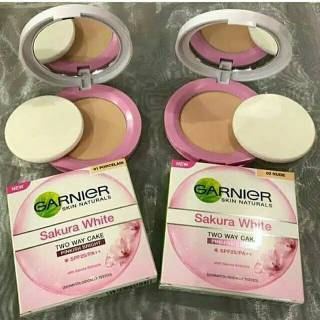 Garnier sakura white pinkish bright two way cake memberikan. Harga bedak padat garnier sakura white memang lebih murah dibanding dengan yang sakura white original komposisi bahan bedak yang berbeda serta kandungan spf nya yang belum mencapai angka 15. Ada dua jenis two way cake dari garnier yaitu garnier sakura white two way cake pinkish bright spf 25 pa dan garnier light complete two way cake whitening matte spf 25 pa. Sayangnya masih belum ada bedak dalam rangkaian produk garnier sakura.