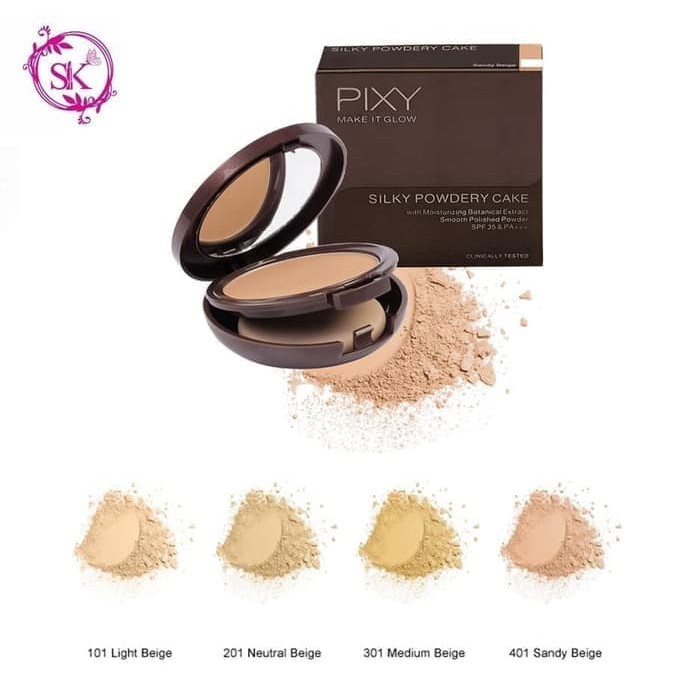 Bedak pixy ini hadir dengan 4 varian shades yakni natural white natural beige tropical beige yellow beige dan dijual dengan harga rp.