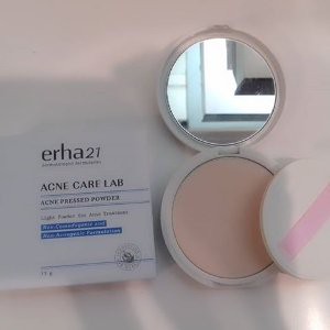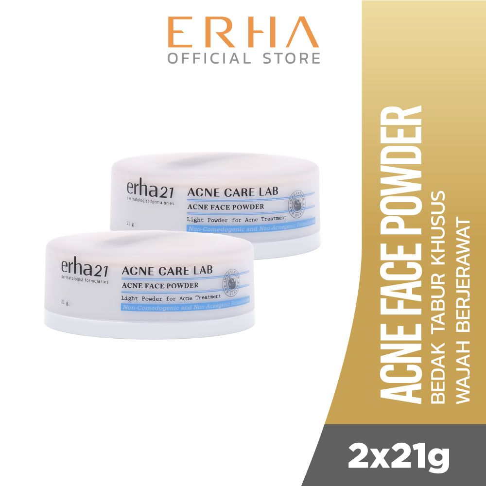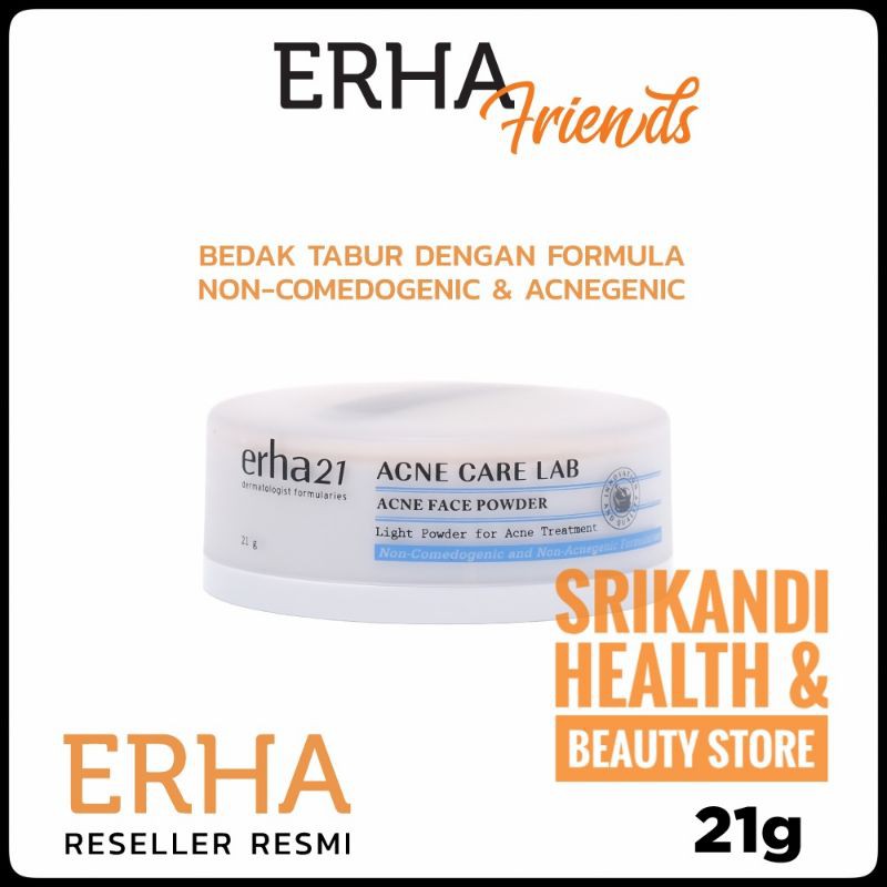 Bedak tabur erha untuk kulit berjerawat. Bedak ini memang diperuntukkan untuk menge set foundation agar tahan lebih lama sekaligus mengontrol minyak. Formula non comedogenic dan non acnegenic didalamnya membuat bedak ini tidak akan menimbulkan komedo. Selain menjaga sistem pertahanan kulit erha acne care lab face powder juga berfungsi sebagai tabir surya dan pelembab yang melindungi kulit dari bahaya sinar matahari uva dan uvb. Kandungannya terdiri dari sulfur salicylic acid dan zinc guconate aloe vera extract dan hydrogen peroxide yang dapat bekerja dengan baik untuk merawat dan mencegah timbulnya jerawat di kulit.