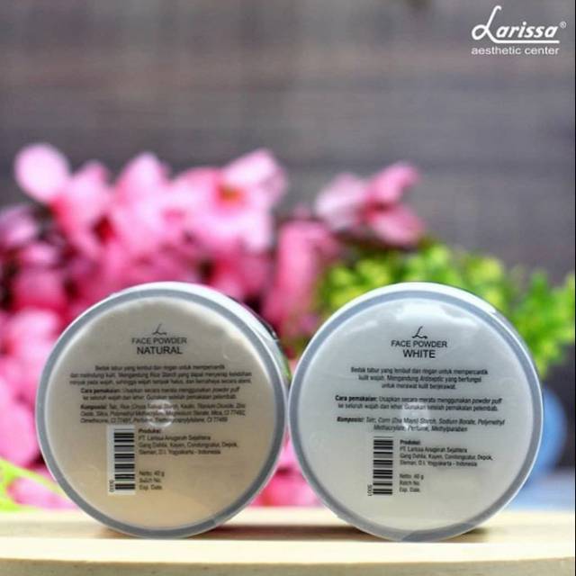 Bedak tabur natural larissa. Face powder natural merupakan bedak tabur yang lembut dan ringan untuk mempercantik dan melindungi kulit thursday 3 september 2020 open 08 00 s d jam 17 00 wib minggu hari besar slow respon produk kecantikan online. Nomor bpom bedak larissa face powder white. Larissa aesthetic center merupakan klinik kecantikan estetika pratama yang mengusung konsep natural ingredient with high technology yaitu sistem perawatan wajah perawatan rambut hingga perawatan tubuh dengan memakai bahan alami yang disinergikan penggunaan teknologi modern dengan harga terjangkau. Bedak ini bisa menjadi alternatif tepat untuk mempertahankan penampilan agar tetap terlihat fresh sepanjang hari.