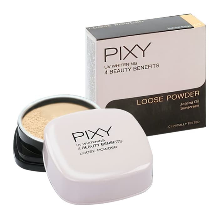 Pixy uv whitening loose powder hadir dengan 3 shade yakni ivory yellow beige dan natural beige. Bedak tabur pixy ini termasuk bedak terbaru yang juga cocok untuk digunakan aktivitas sehari hari dengan tampilan natural. Bedak beauty powder natural beige. Miliki bedak pixy anda dengan penawaran menarik dan diskon hingga 72.