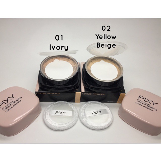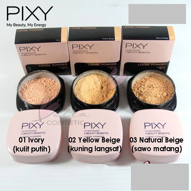 Bedak pixy uvw loose powder. Terdapat 3 shade atau warna yakni ivory yellow beige dan natural beige dengan harga 1 kemasannya sekitar rp 28 000. Pixy loose powder yellow beige ukuran 12 gram gambar pixy loose powder yellow beige ukuran 12 gram. Dengan packaging cantik berwarna pink menjadikan pemakainya terlihat lebih girly bedak tabur.