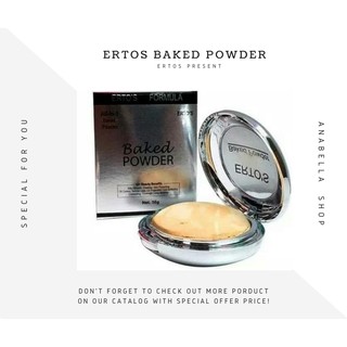 Bedak ertos diformulasikan secara khusus dengan teknologi terbaru untuk menghasilkan compact powder yang hygenic serta menggunakan powder pilihan yang lembut dan ringan ertos baked powder berfungsi untuk merias kulit wajah dengan rata sehingga dapat meningkatkan penampilan kulit wajah menjadi cerah halus dan lembut memberikan warna alami netral dengan matte cahaya lembut.