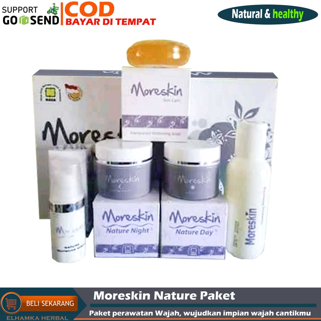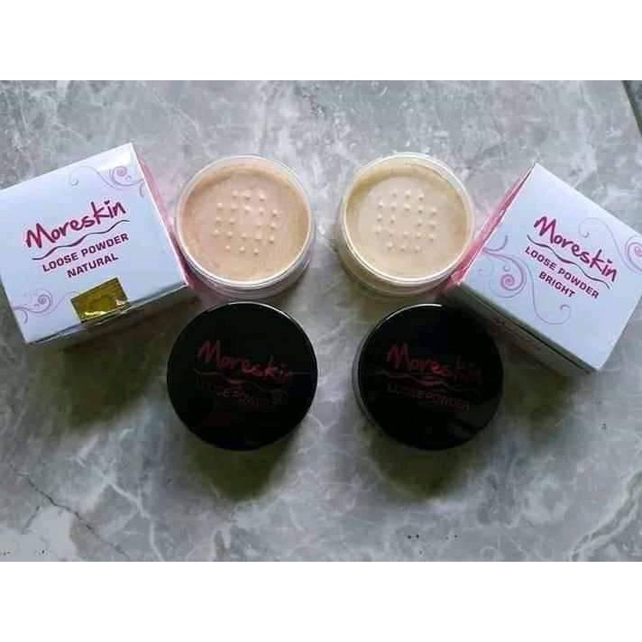 Produk perawatan moreskin nasa disajikan secara lengkap kepada para wanita yang ingin memiliki kulit wajah yang cerah terawat. Moreskin loose powder natural memiliki warna yang alami sebagaimana umumnya kulit wajah orang indonesia. Anda tidak perlu lagi menyediakan berbagai produk cukup dengan satu paket produk moreskin cosmetic skin care ini anda sudah bisa melakukan perawatan kecantikan sendiri di rumah. Moreskin loose powder natural.