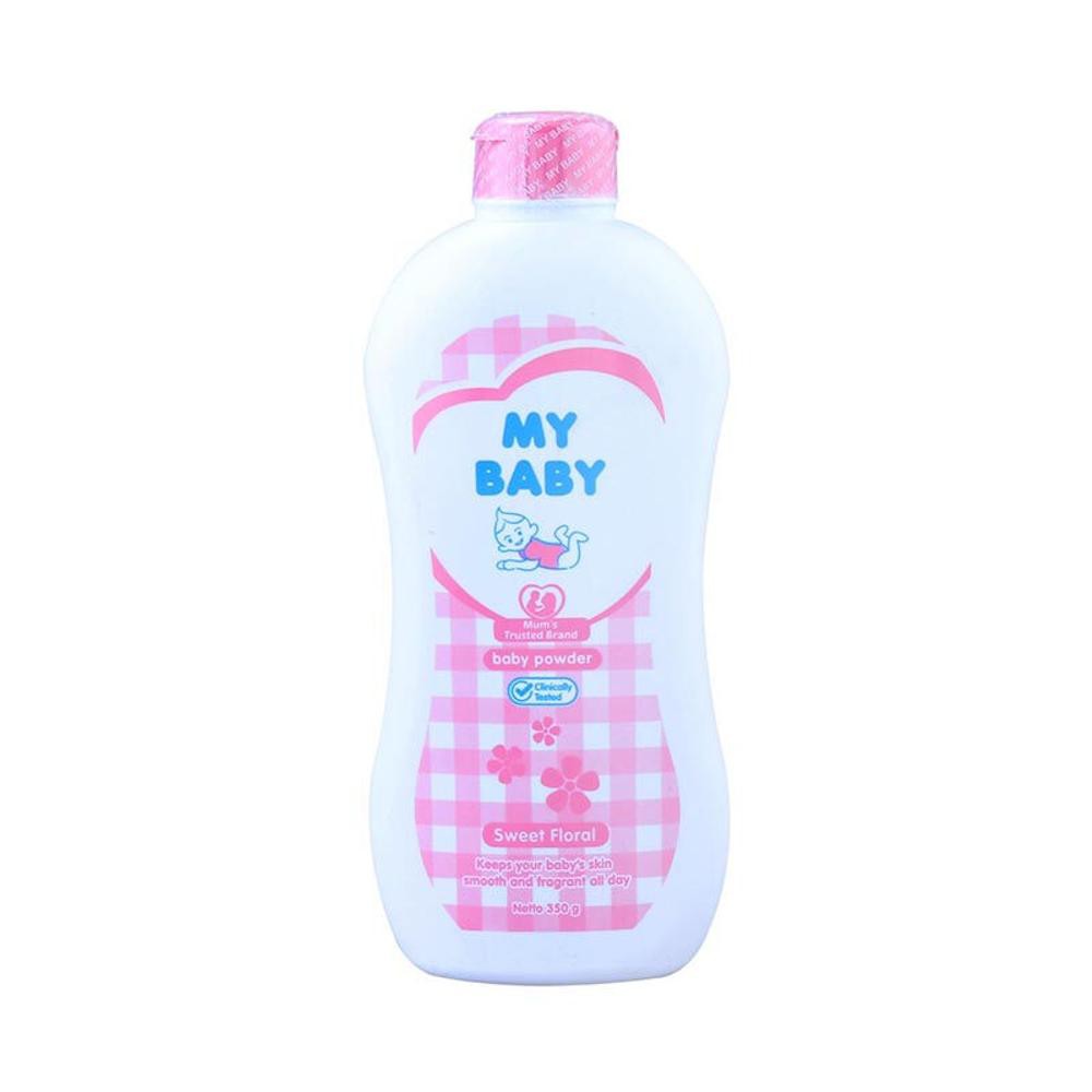Bedak my baby powder adalah bedak tabur dengan formula yang lembut dan mudah merata berfungsi untuk membantu menjaga kelembaban dan melindungi kulit bayi yang teramat halus serta mengharumkan dengan wangi bunga.