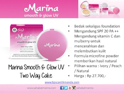 23 000 sementara untuk kemasan compact powder dibanderol dengan harga rp 17 000. Marina smooth and glow uv two way cake ini sudah mengandung spf 20 pa yaitu sebagai proteksi terhadap uv a dan uv b. Mulai dari marina smooth glow uv bb cream with spf 20 paa marina smooth glow uv compact powder with spf 20 paa with uvb uva protection dan yang terbaru dari marina smooth glow uv two way cake spf 20 paa uvb uva protection. Karena diluar sanah banyak banget bedak bedak yang overrated.
