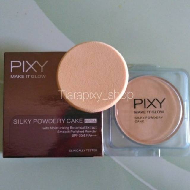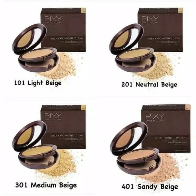 Sedangkan tingkat coverage nya di kulit terbilang tinggi lho. Two way cake silky powdery cake dengan tekstur halus dan rigan memberikan daya tutup yang tampak natural dengan hasil akhir kulit tampak halus bercahaya dan tahan lama. Keterangan produk bedak pixy make it glow silky powdery cake twc. Bedak pixy make it glow silky powdery cake adalah bedak padat dengan formula two way cake yang teksturnya halus dan ringan dapat membuat kulit wajah tampak natural dengan hasil akhir kulit yang tampak halus bercahaya dan tahan lama.