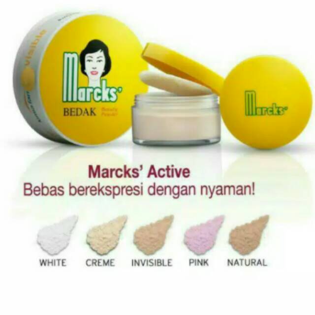 Harga bedak tabur marcks active. Karena memang pasarnya untuk semua kalangan masyarakat. Marcks active varian creme 20 gram. Marcks bedak active white 20 gr rp 27 000 marcks classic crème 40 gr rp 16 000 marcks classic invisible 40 gr rp 15 000 marcks classic pink 40 gr. Produk kecantikan bedak tabur marcks untuk aktivitas sehari hari.