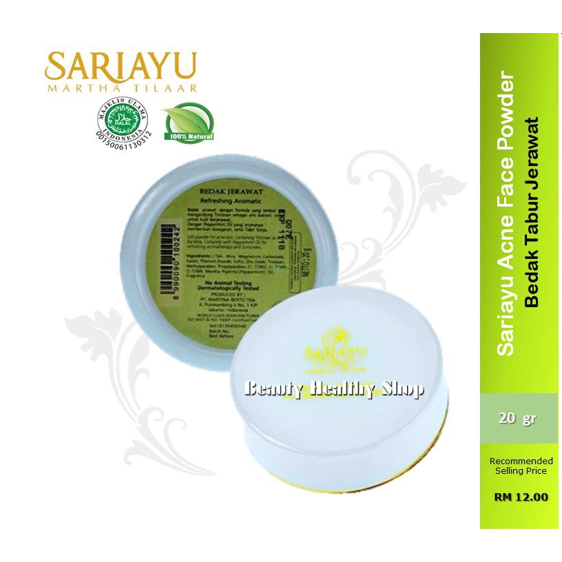 Semakin ditunjang dengan krim malam maka hasilnya semakin baik. Bentuknya yang tabur dapat mengurangi minyak pada wajah anda. Harga bedak sariayu bedak jerawat berkisar 26 000 cukup terjangkau untuk mengatasi masalah pada muka berjerawat yang membandel dan susah hilang. Dengan ekstrak pegangan dan daun sirih sabun ini bisa mengatasi masalah jerawat secara efektif.