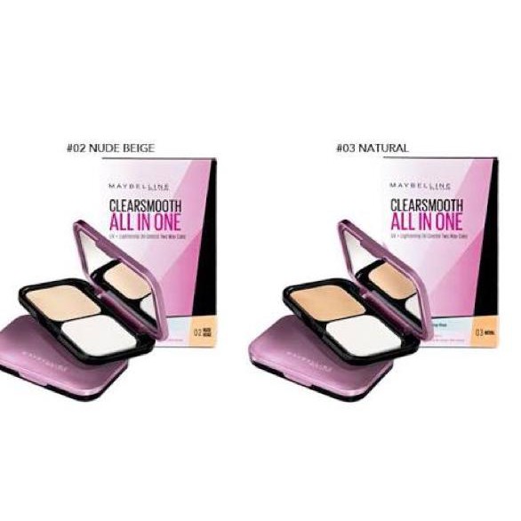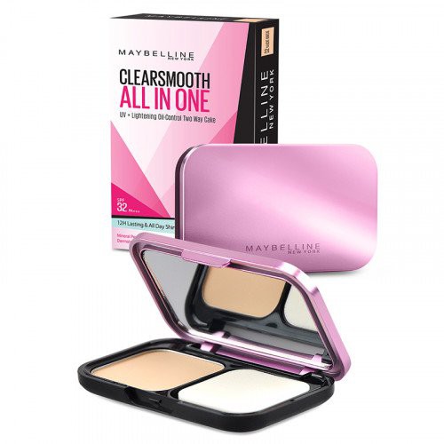 Bedak padat maybelline two way cake ini juga dapat menutup pori dan mencerahkan wajah. Maybelline clear smooth all in one shine free cake powder ini memiliki 5 shades yang disesuaikan dengan warna kulit wanita asia. Maybelline clear smooth all in one merupakan bedak multifungsi yang diperkaya oleh formula ultra fine powder dengan kandungan pro vitamin c dan spf 25 pa bantu melindungi mencerahkan dan mengurangi kilap. Maybelline clear smooth all in one mempu mencerahkan kulit sehingga tampak lebih alami menyamarkan noda hitam dan ketidaksempurnaan pada kulit wajah tekstur bedak yang halus mudah merata pada permukaan kulit untuk kulit tampak lebih halus meratakan warna tona untuk menciptakan warna kulit yang natural dan merata sempurna.