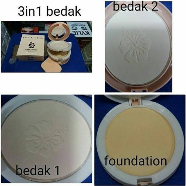 Jual bedak 3in1 implora compact powder bedak foundation kode 320 dengan harga rp19 500 dari toko online win shop solo kota surakarta. Bedak implora two way cake bpom bedak implora berfungsi untuk menyamarkan noda hitam mengurangi minyak berlebih menyamarkan jerawat mencerahkan wajah agen kosmetik murah kosmetik termurah agen kosmetik surabaya jual kosmetik. Talc ada di dalam bedak ini sebanyak 100. Beli 1 dapat 3 2 bedak dan 1 foundation gratis pensil alis d alam beberapa menit ga perlu ribet salon ga ribet tinggal hap implora compact powder.