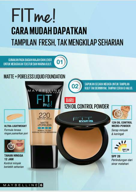 Matte poreless natural tak berpori dan tahan lama bebas kilap hingga 12 jam. Jika kamu sedang mencari bedak yang hasilnya natural cocok buat anak remaja dan harganya ramah di kantong maybelline fit me. Bedak ini diperuntukkan buat jenis kulit normal cenderung berminyak. Matte poreless yang 220.