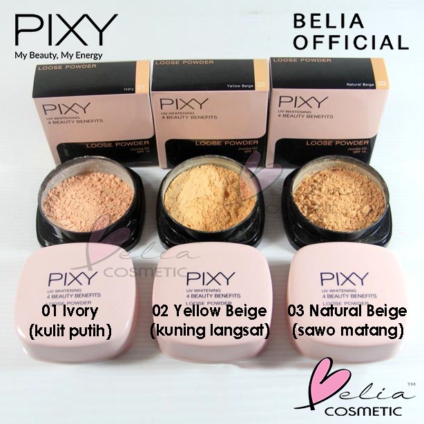 Bedak pixy uvw loose powder. Pixy dewy cushion adalah base makeup yang memiliki formula seperti liquid atau cair. Dalam paket kemasannya sudah terdapat sponge aplikator. Harga bedak pixy natural beige pixy uv whitening loose powder di formulaikan dengan banyak keunggulan dan 3 pilihan warna yang mewakili wanita berkulit putih cerah kuning langsat dan sawo matang.